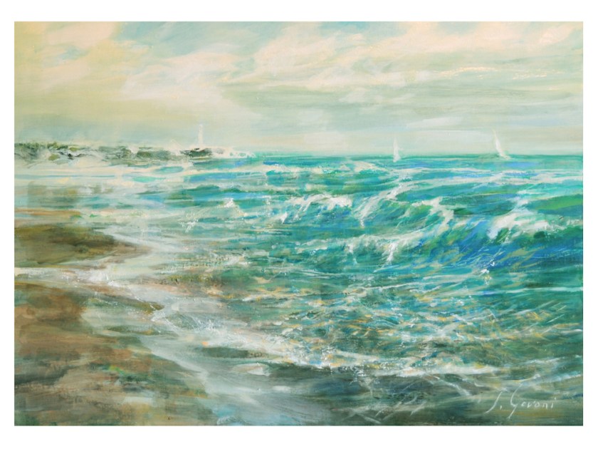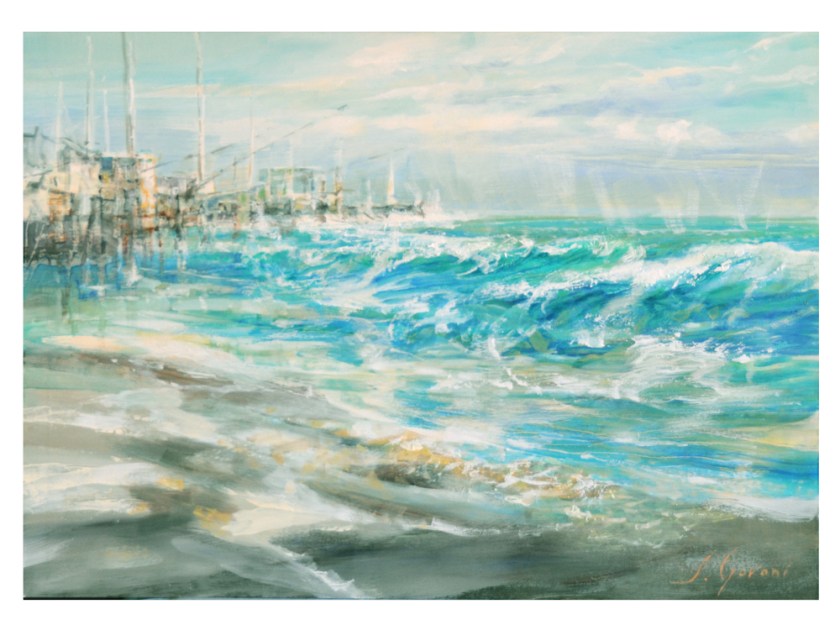 L’onda increspa e sciaborda prima di dilagare nella risacca e infrangersi sulle strutture costiere madide, erose.
